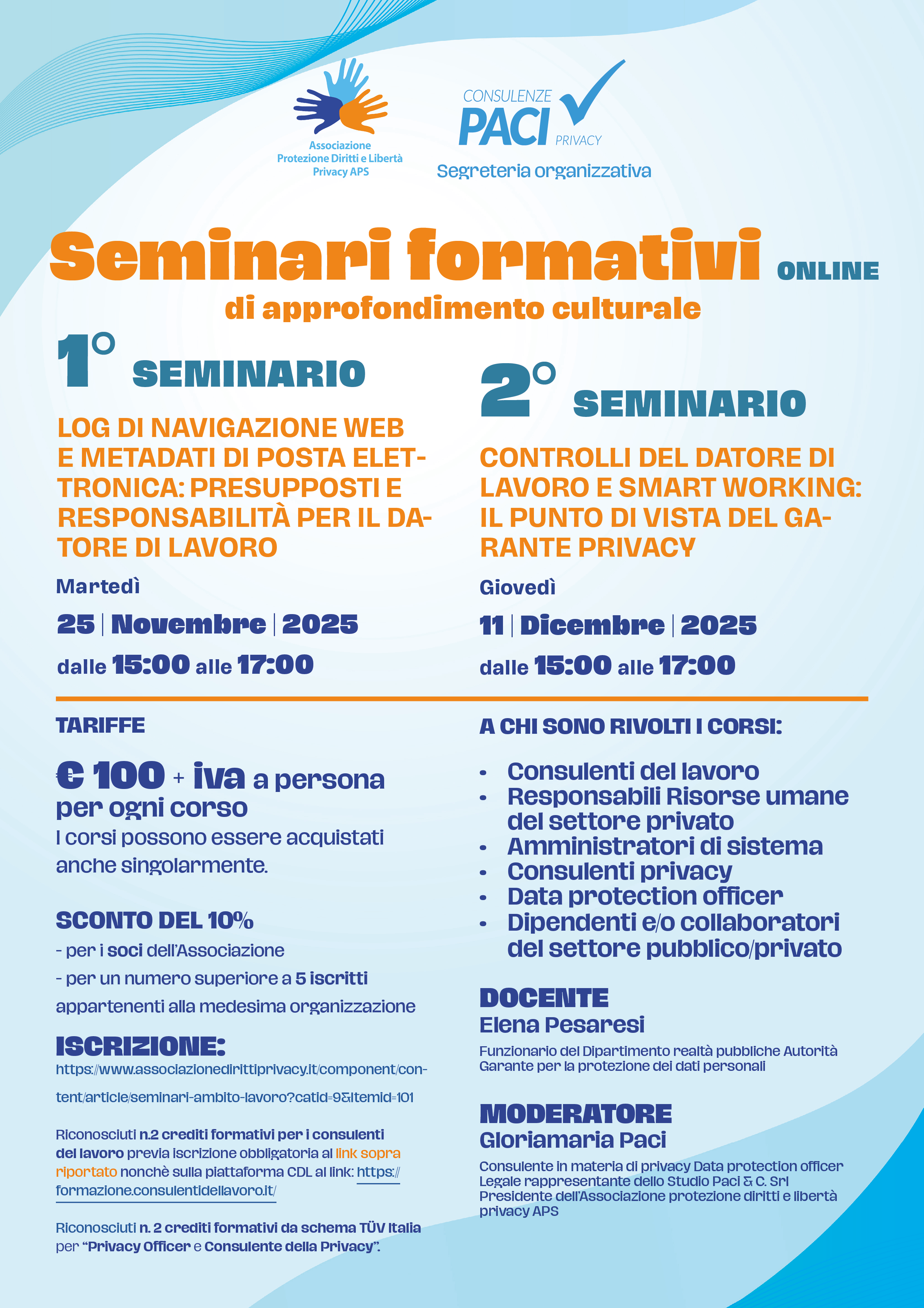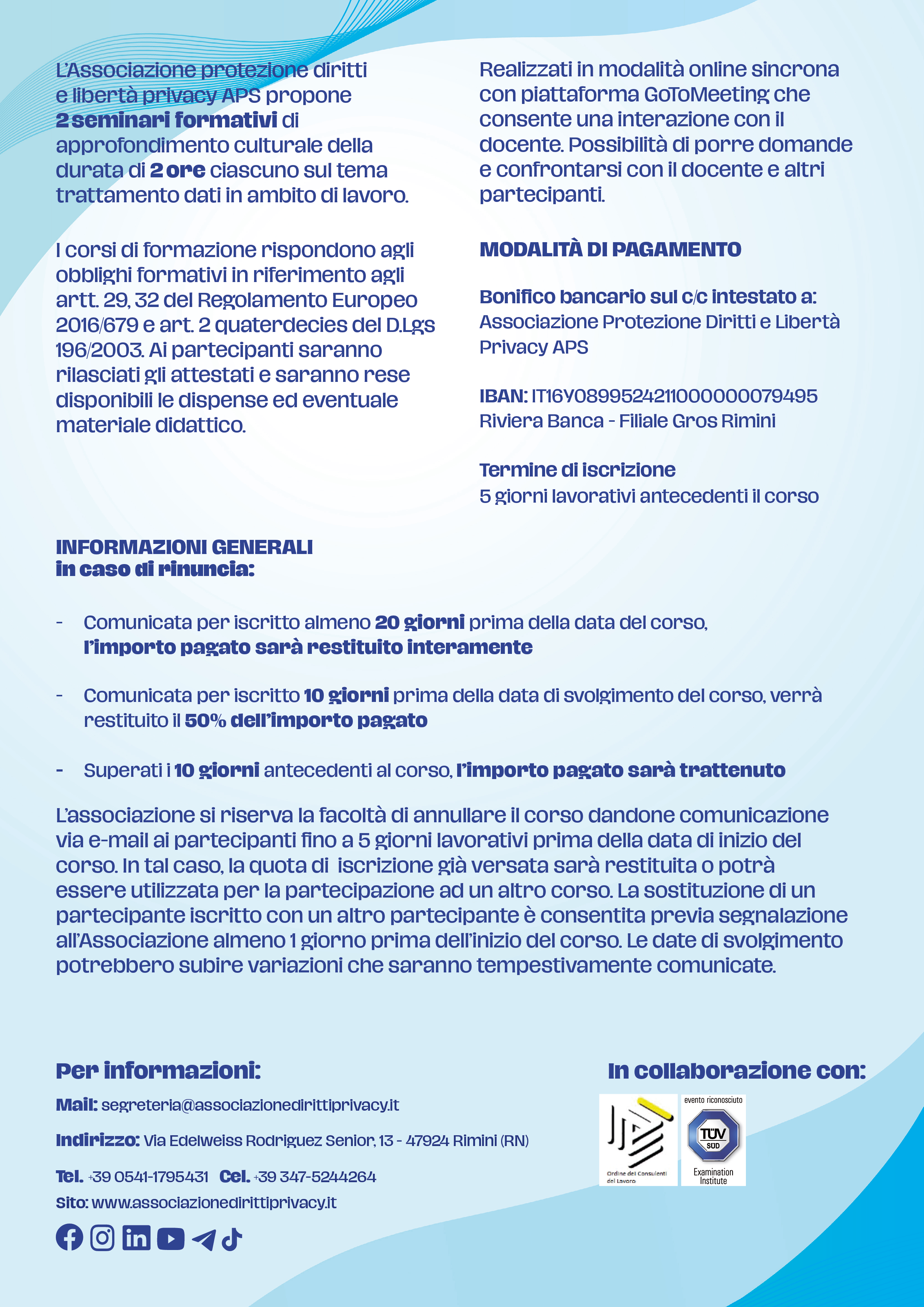 Riconosciuti n. 2 crediti formativi da schema TÜV Italia per “Privacy Officer e Consulente della Privacy”