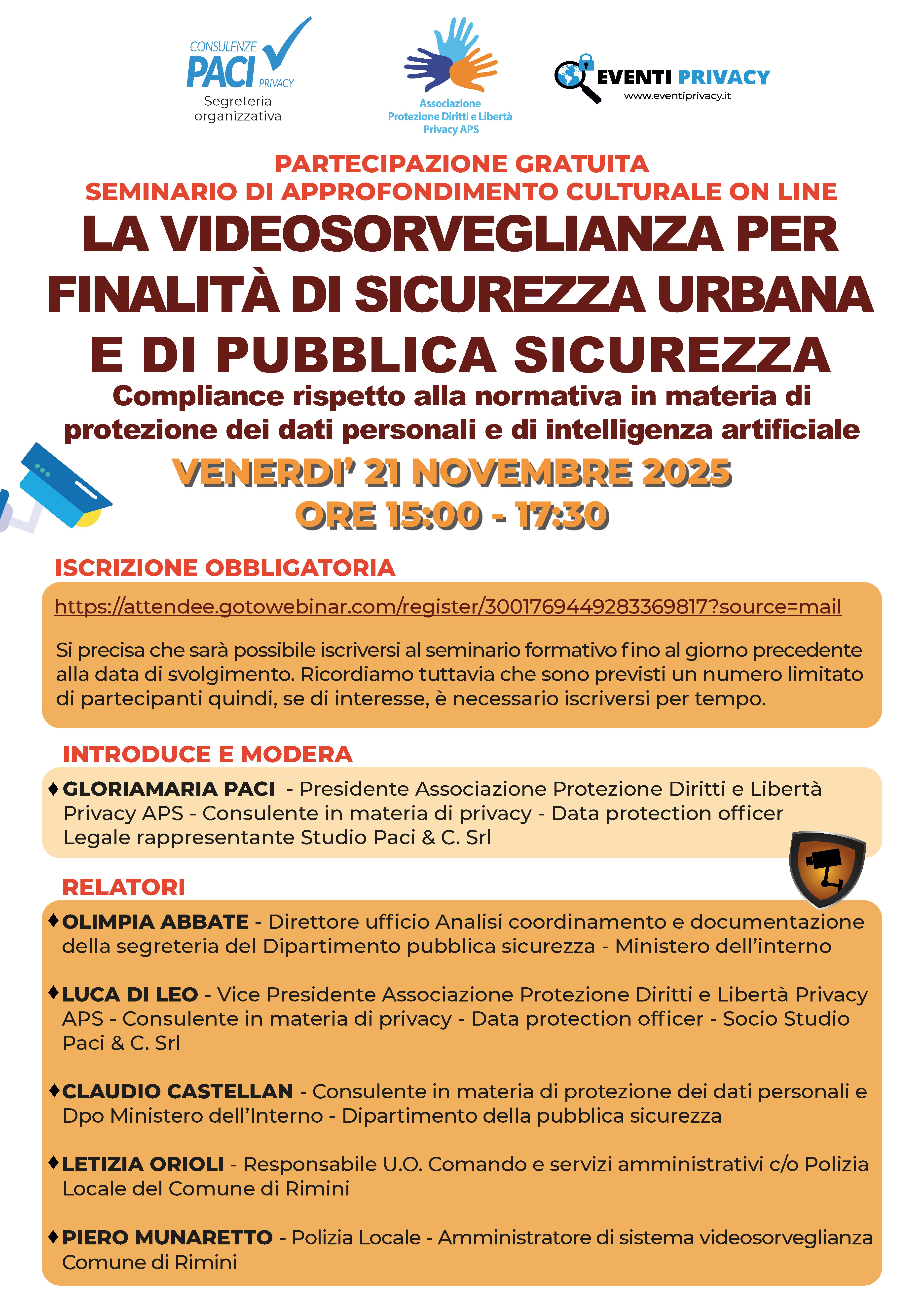 GLORIAMARIA PACI - Presidente Associazione Protezione Diritti e Libertà Privacy APS - Consulente in materia di privacy - Data protection officer - Legale rappresentante Studio Paci & C. Srl