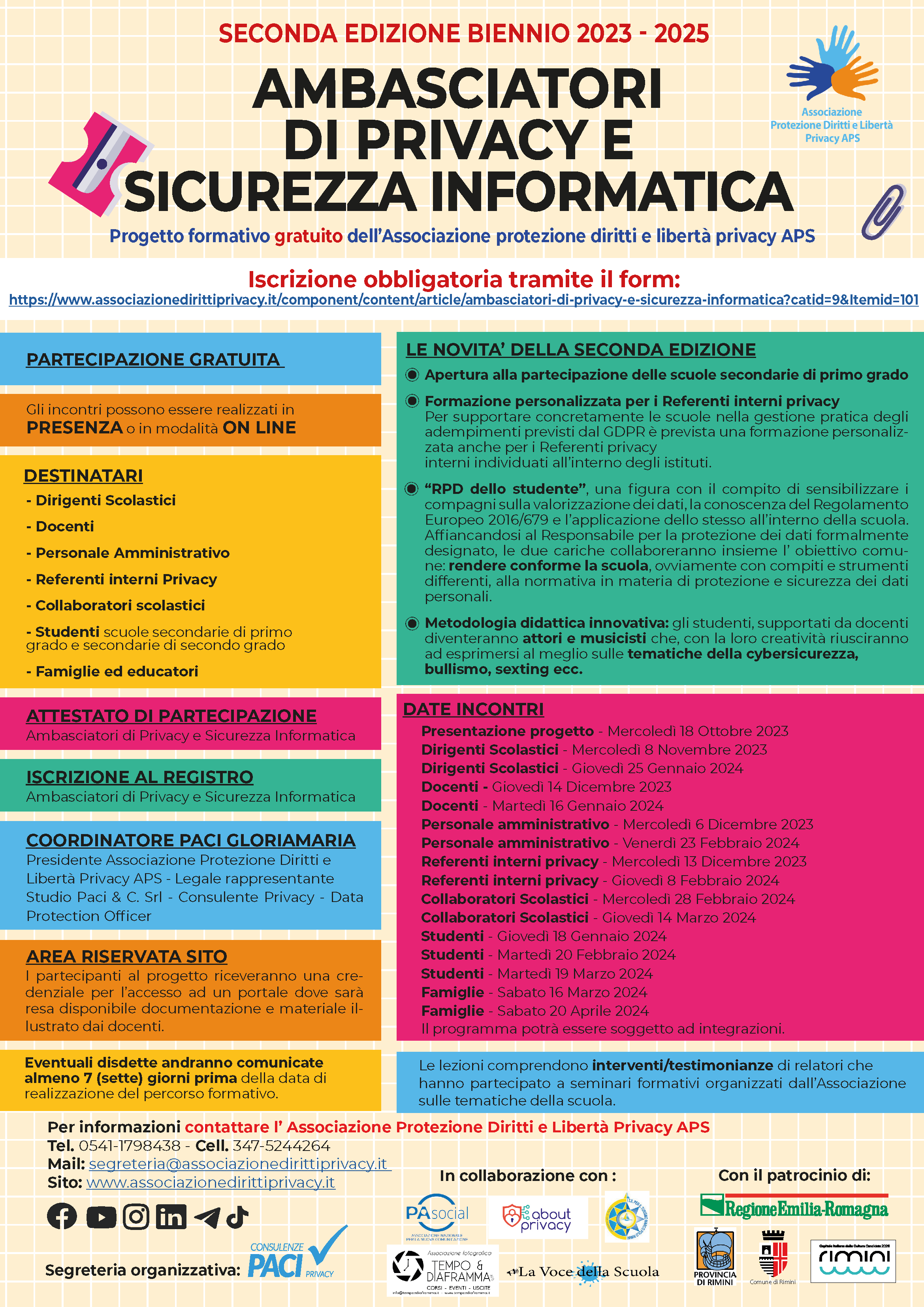 Clicca qui per scaricare il programma Ambasciatori di privacy e sicurezza informatica! (Pagina in continuo aggiornamento) |