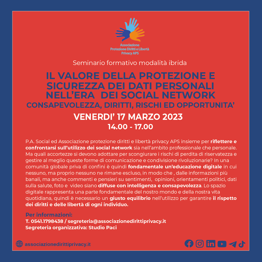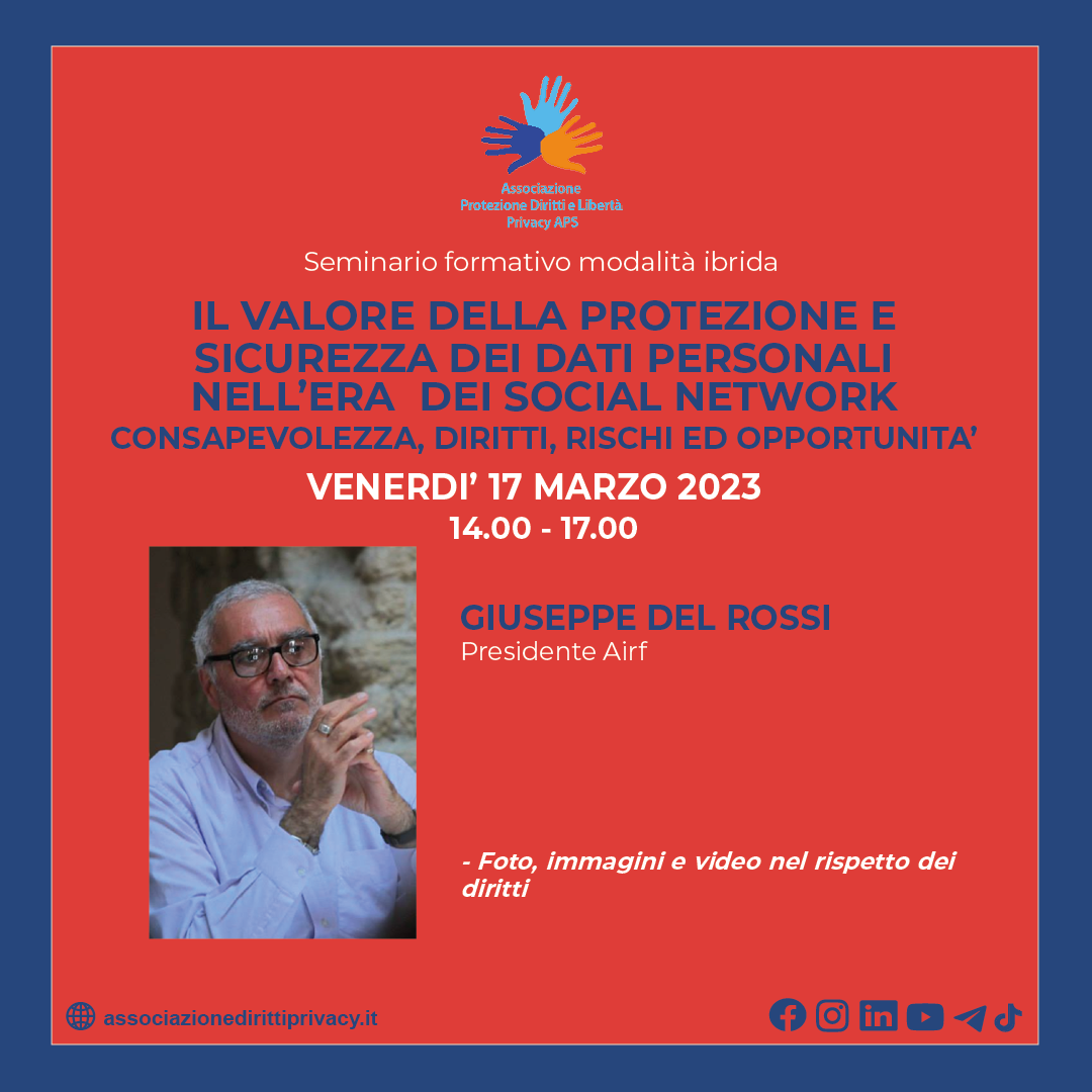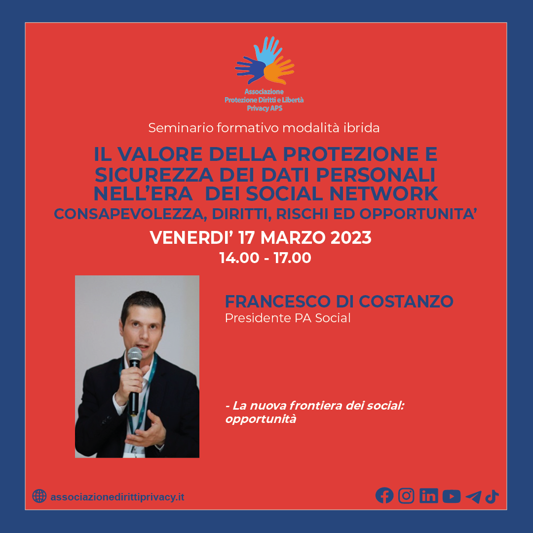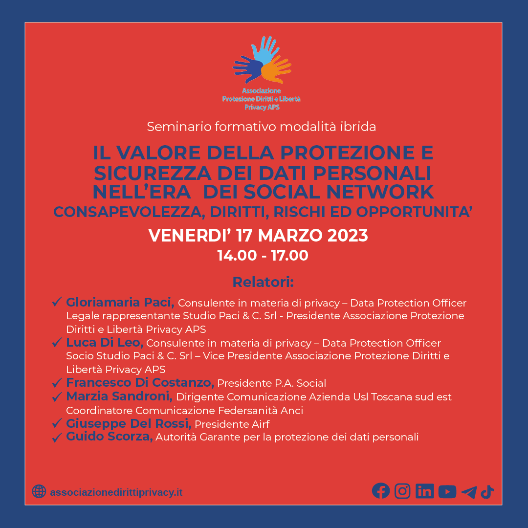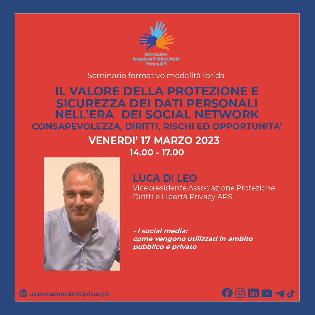 - Luca Di Leo, Consulente in materia di privacy Data Protection Officer - Vice Presidente Associazione Protezione Diritti e Libertà Privacy APS