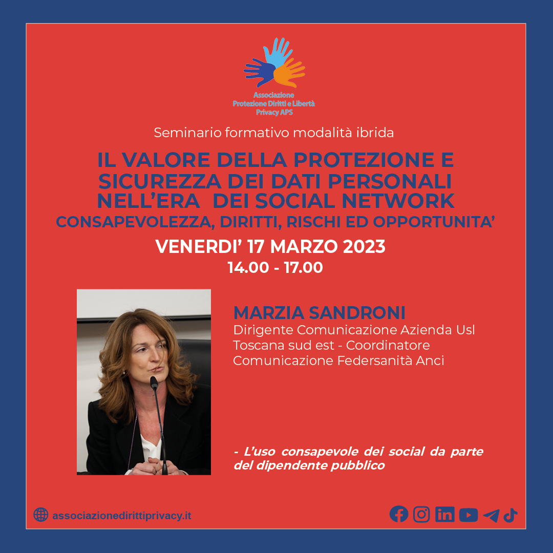 - Gloriamaria Paci, Consulente in materia di privacy - Data Protection Officer - Presidente Associazione Protezione Diritti e Libertà Privacy APS