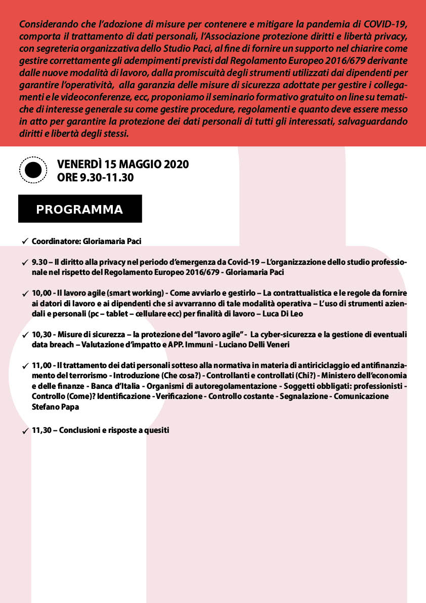 - Gloriamaria Paci, Consulente in materia di privacy – Data Protection Officer – Presidente Associazione protezione diritti e libertà privacy APS