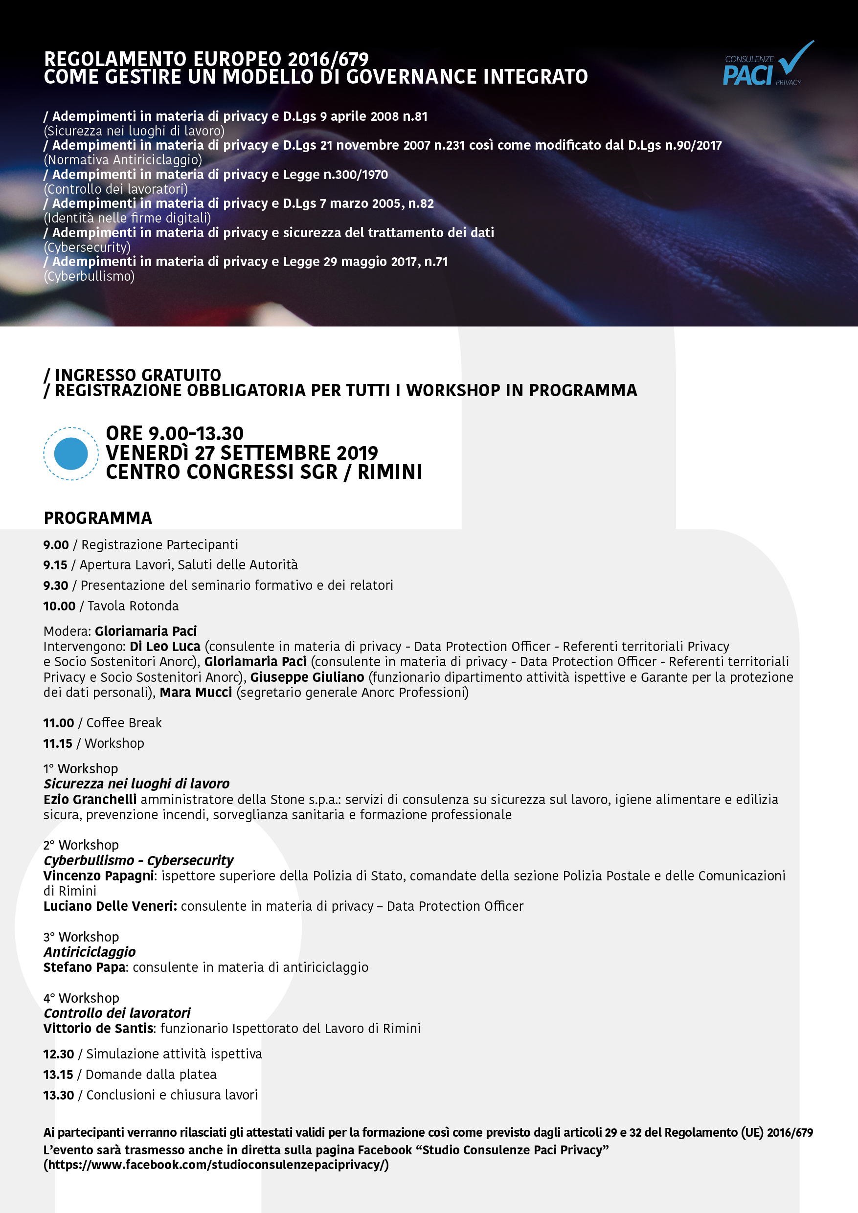 • GLORIAMARIA PACI - Consulente in materia di privacy - Data Protection Officer - Referenti territoriali Privacy e Socio Sostenitori Anorc