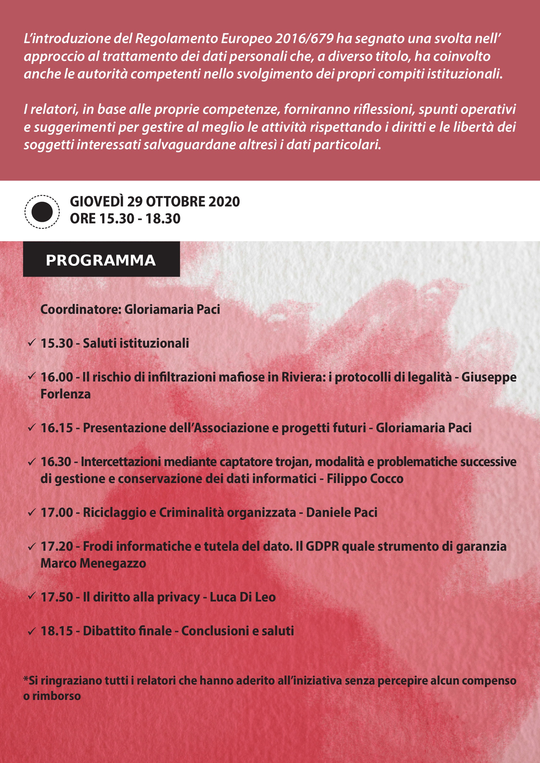 - Gloriamaria Paci - Consulente in materia di privacy - Data Protection Officer – Presidente Associazione Protezione Diritti e Libertà Privacy APS